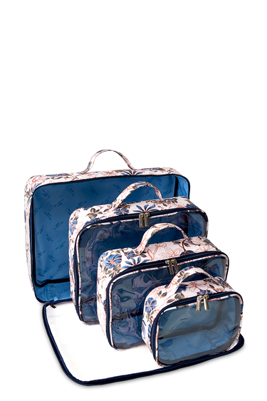 Para quem prefere tudo coordenado, o kit necessaire viagem é uma excelente opção. Conjuntos com tamanhos complementares tornam o processo de organização muito mais simples — e visualmente harmônico. Além de prática, essa solução traz uma estética coesa, seja dentro da mala ou em uso no dia a dia.