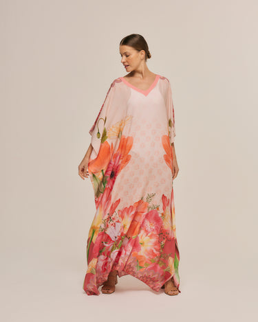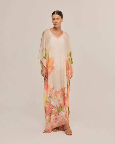 Visualização RápidaKaftan de praia longo de seda Jardim das Tulipas