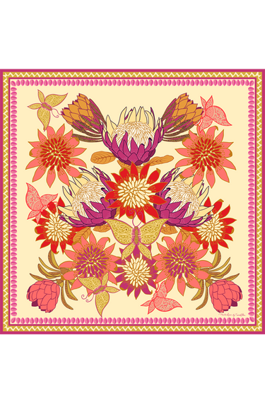 Comprising 24 pieces and 4 accessories, the collection features a variety of scarves, twillys, shawls, kaftans, blouses, kimonos, gym bags and fanny packs. Each piece was designed to reflect Paula Lima's vibrant spirit and the essence of the contemporary woman.