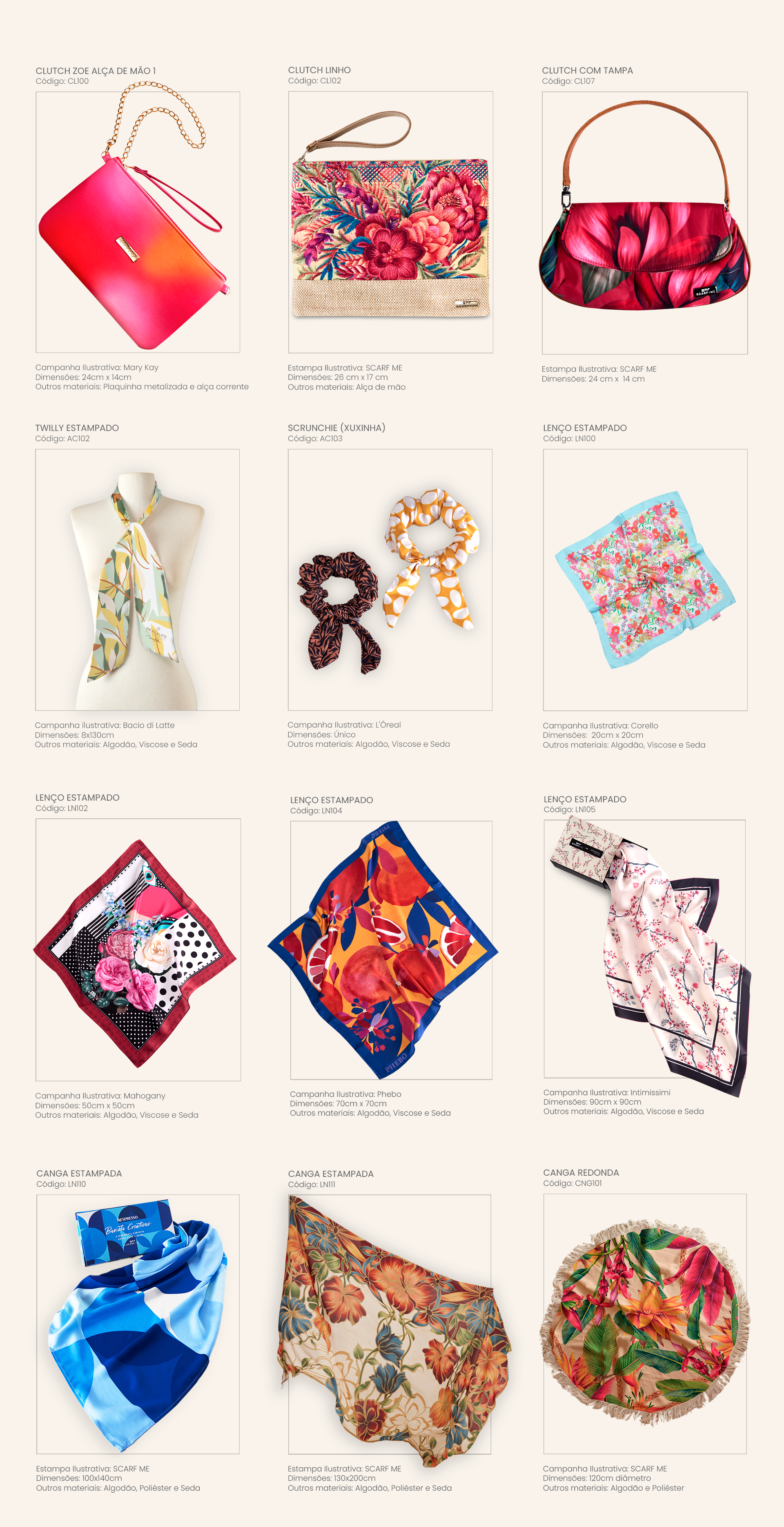 The brand is a pioneer in Brazil and a reference in high-tech printing and finishing, from the creation of the prints to the innovative way of selling, through irreverent mini-boutiques, without losing charm and care for the pieces. Scarf Me is a scarf and scarf factory.