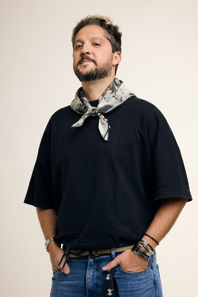 Scarf Me's first collaboration with a man has arrived: André Vasco, a natural communicator, a 24/7 creative, and a lover of scarves. The collection was born from this genuine and spontaneous relationship with the accessory, worn daily with style, personality, and freedom.