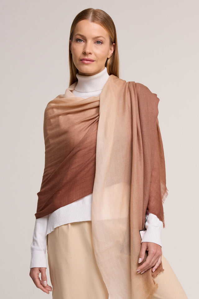 Synonymous with class, elegance and good taste, the Cashmere Degradê Scarf Me is the embodiment of incomparable lightness and softness.