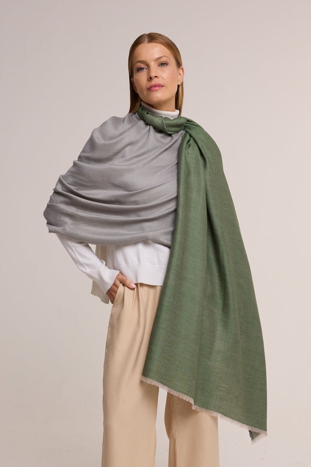 Double-sided cashmere green/grey