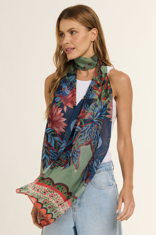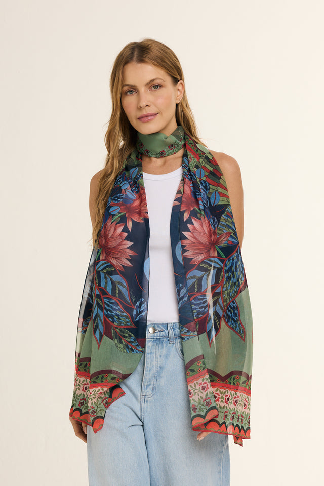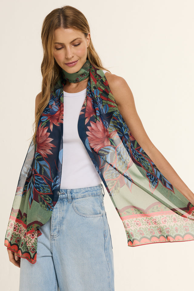 Scarf with light transparency, thin, soft and flexible fabric that provides comfort.
