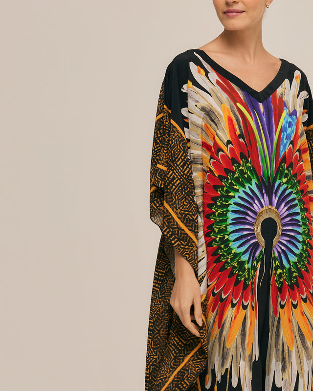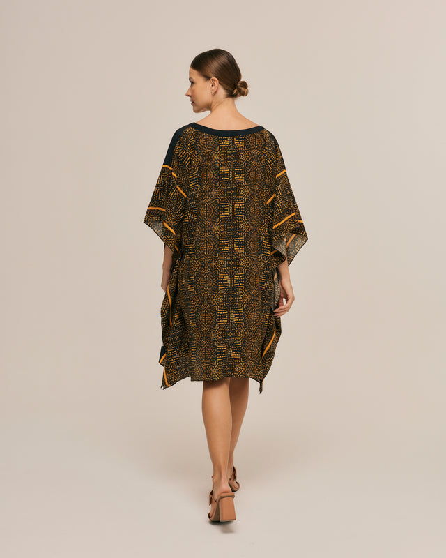 With its perfect shape, the Scarf Me Short Silk Kaftan is an essential piece to have in your wardrobe that combines comfort and sophistication. Elegance, glamor and authenticity define this product.