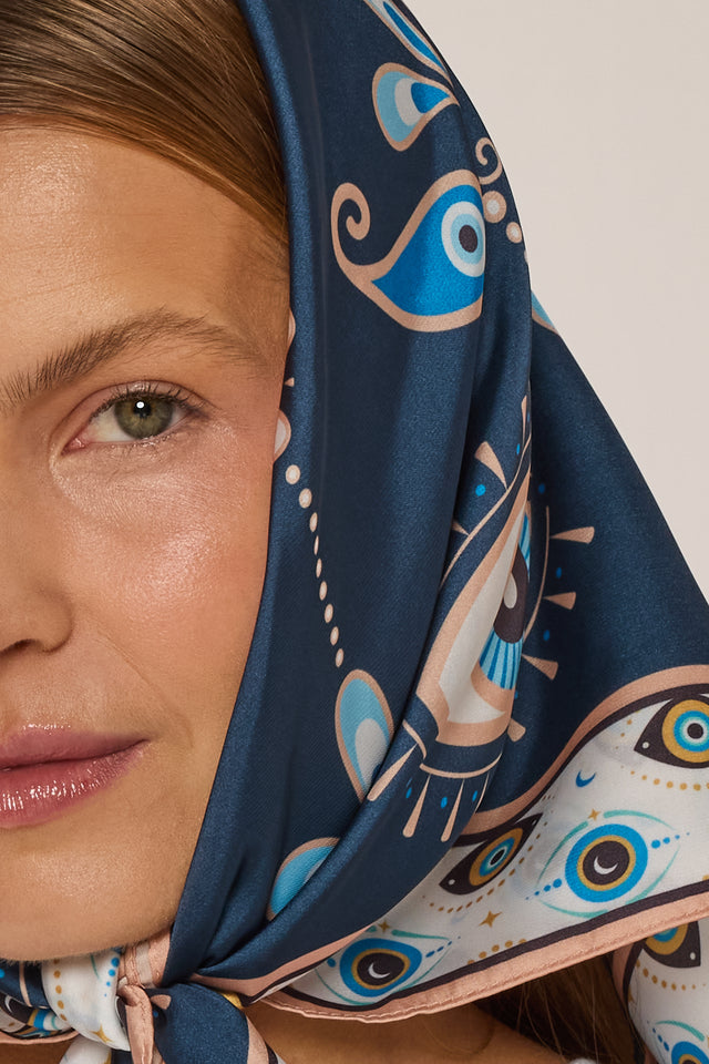 Evil Eye Scarf in Polyester Satin | 70x70cm