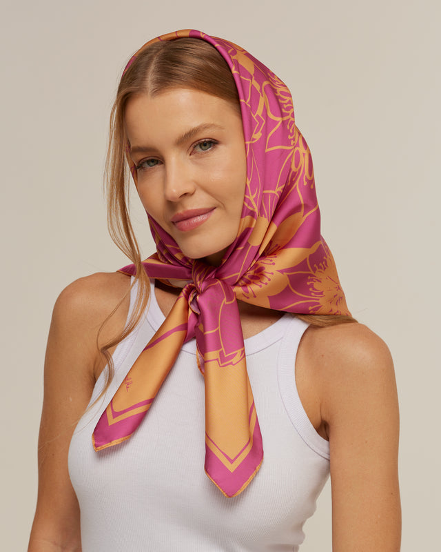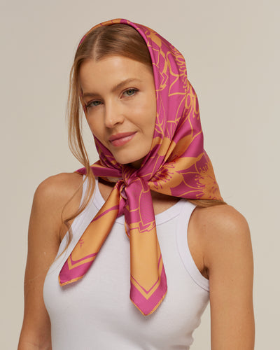 Pink Flower of Power scarf in polyester satin | 90x90cm