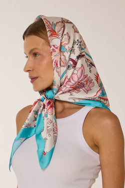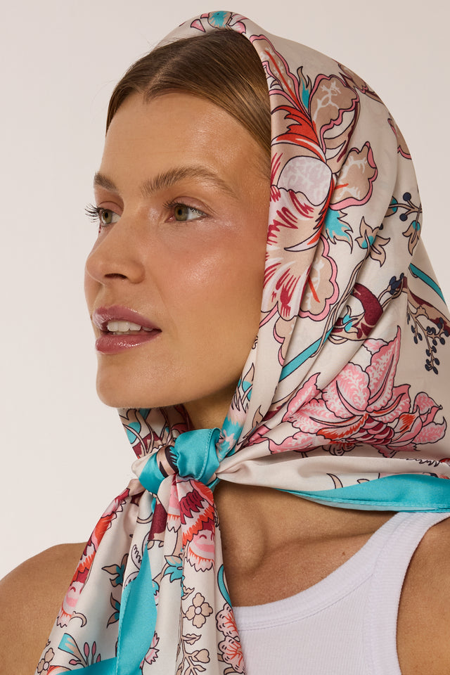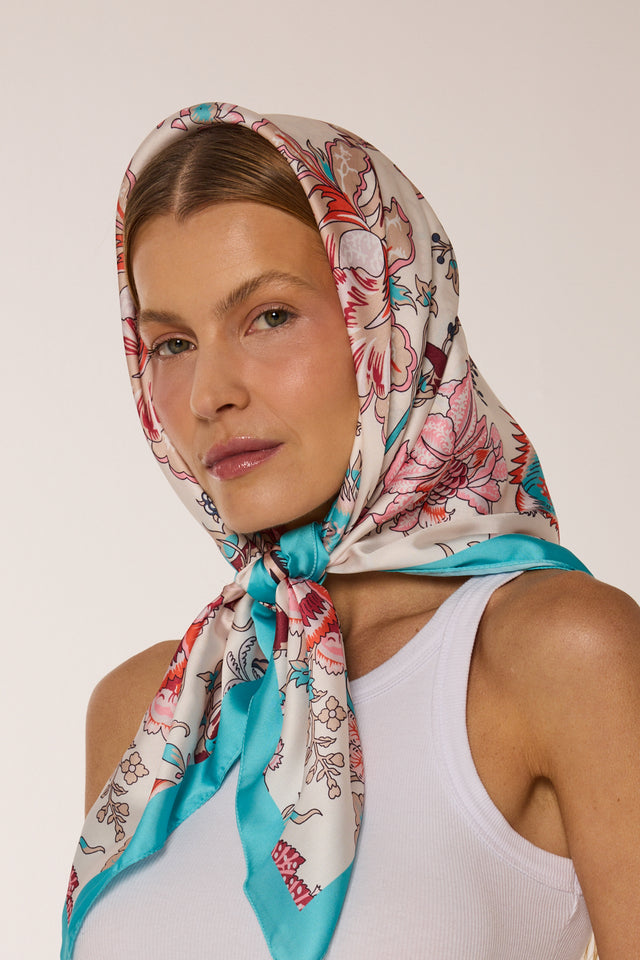 Delicate Floral Scarf in Polyester Satin | 90x90cm