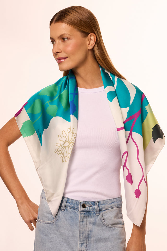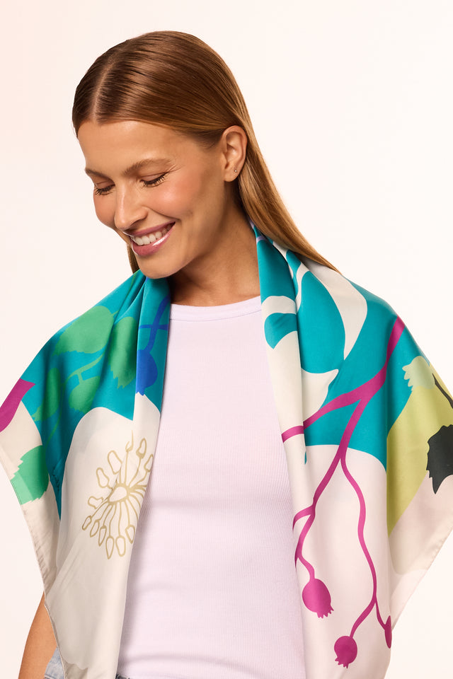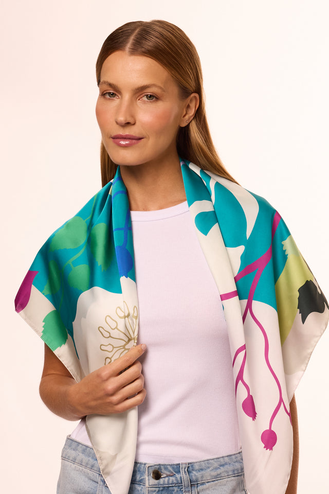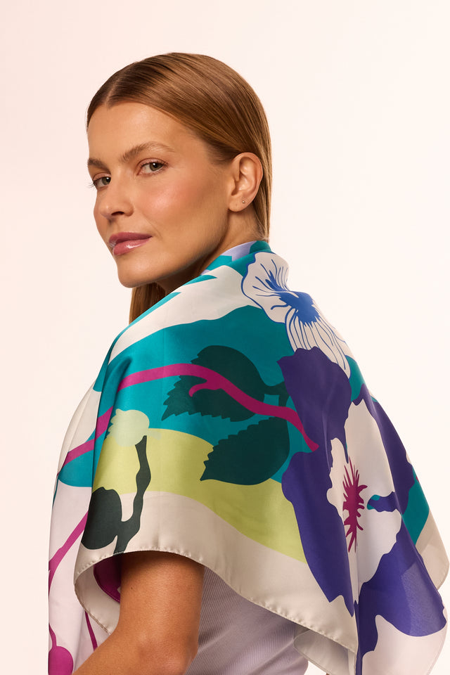 Flowers Colorblock scarf in polyester satin | 90x90cm