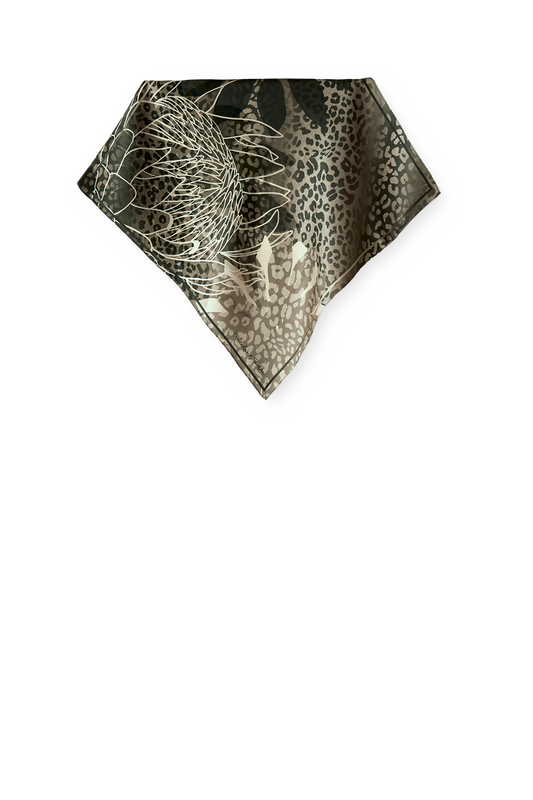 Majestic Print Green Silk Satin Scarf | 40x40cm