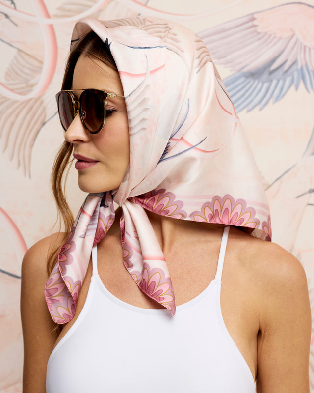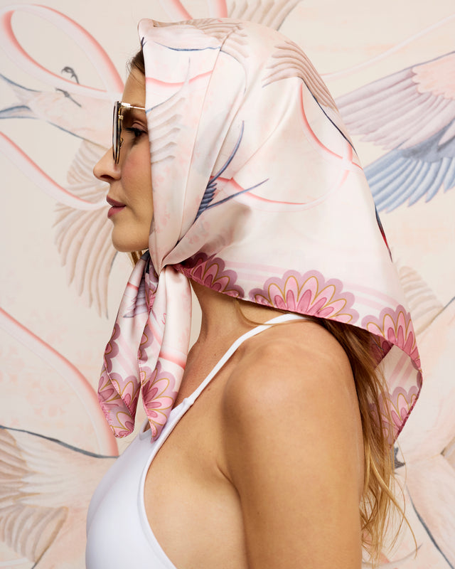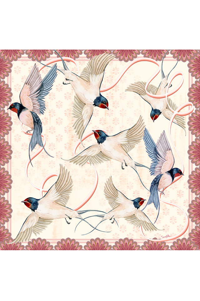 The Flight of the Swallows scarf in polyester satin | 70x70cm