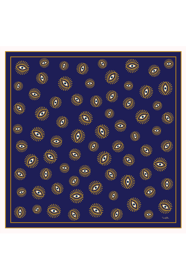 Lenço Olho Grego marinho em cetim de seda | 40x40cm