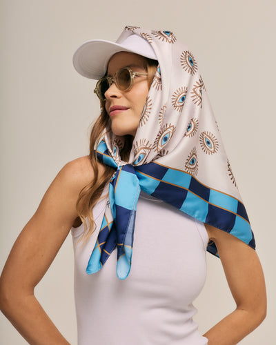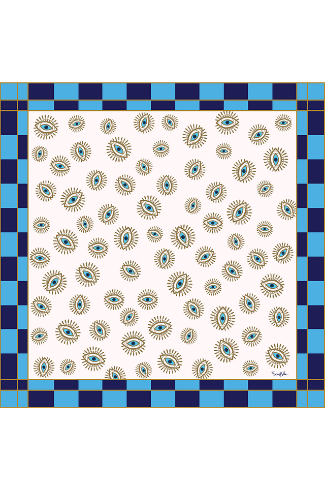 Geometric Evil Eye Scarf in Polyester Satin | 90x90cm