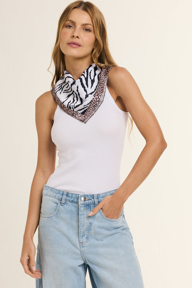 Zebra Leopard Scarf in Polyester Satin | 50x50cm