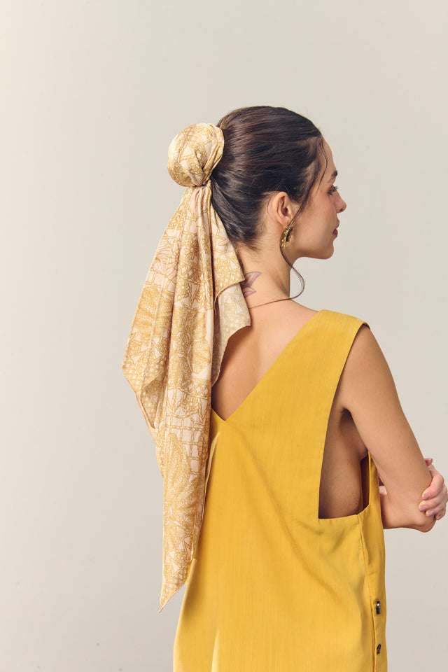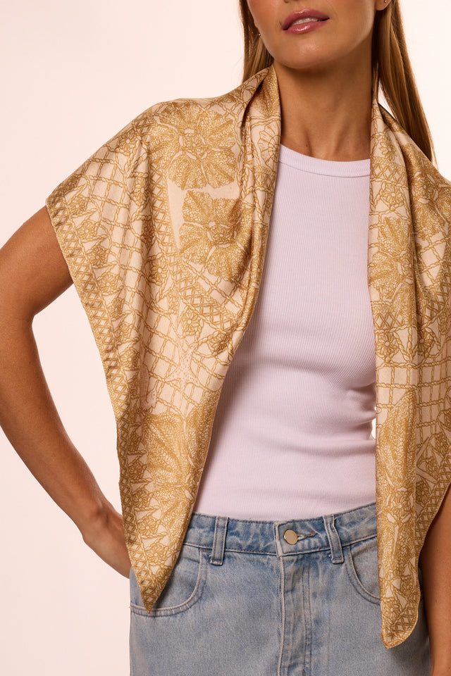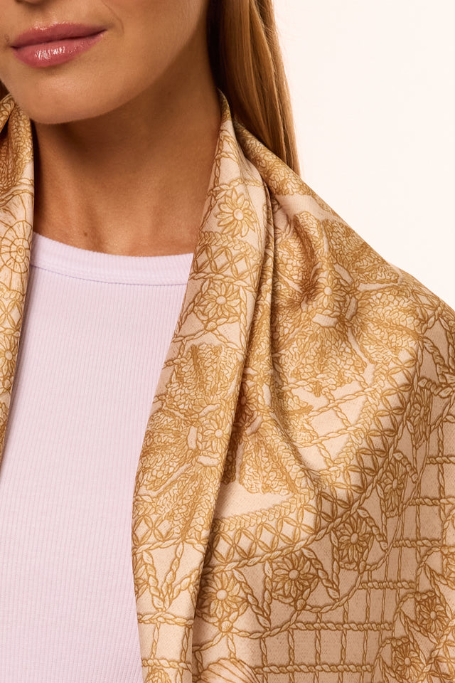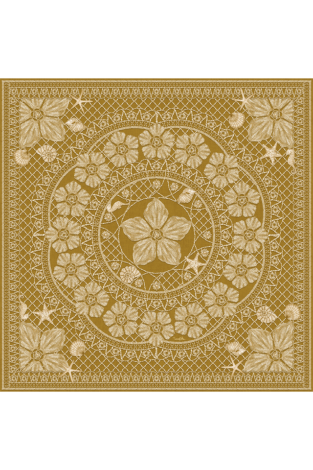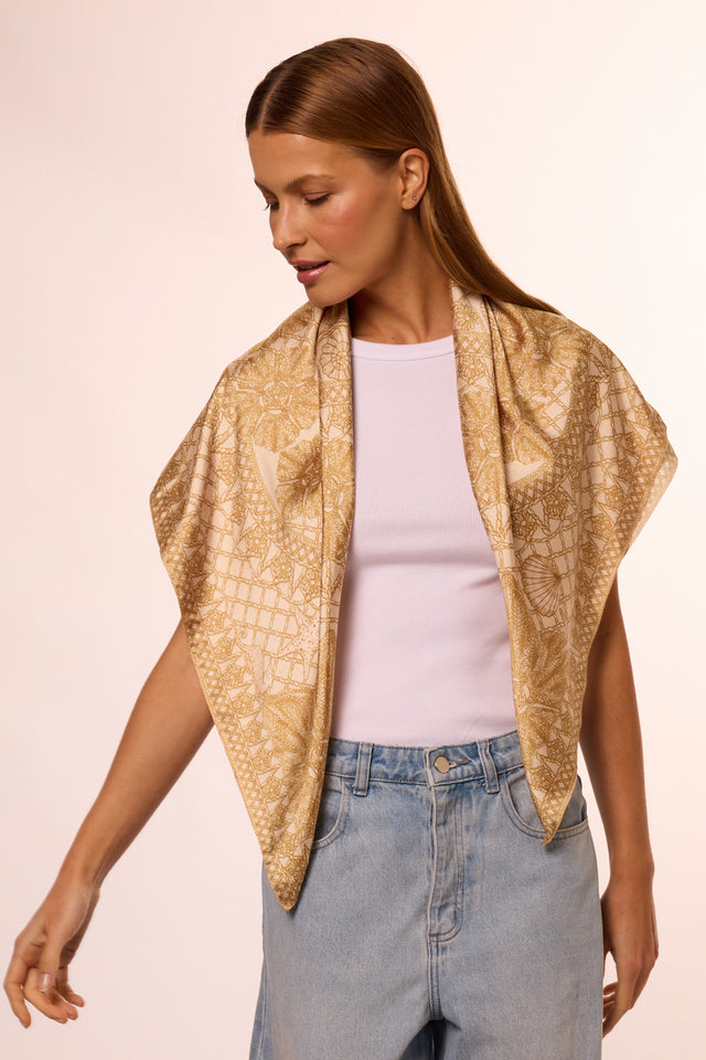 Lenço Ritos de Mar dourado em cetim de seda | 90x90cm