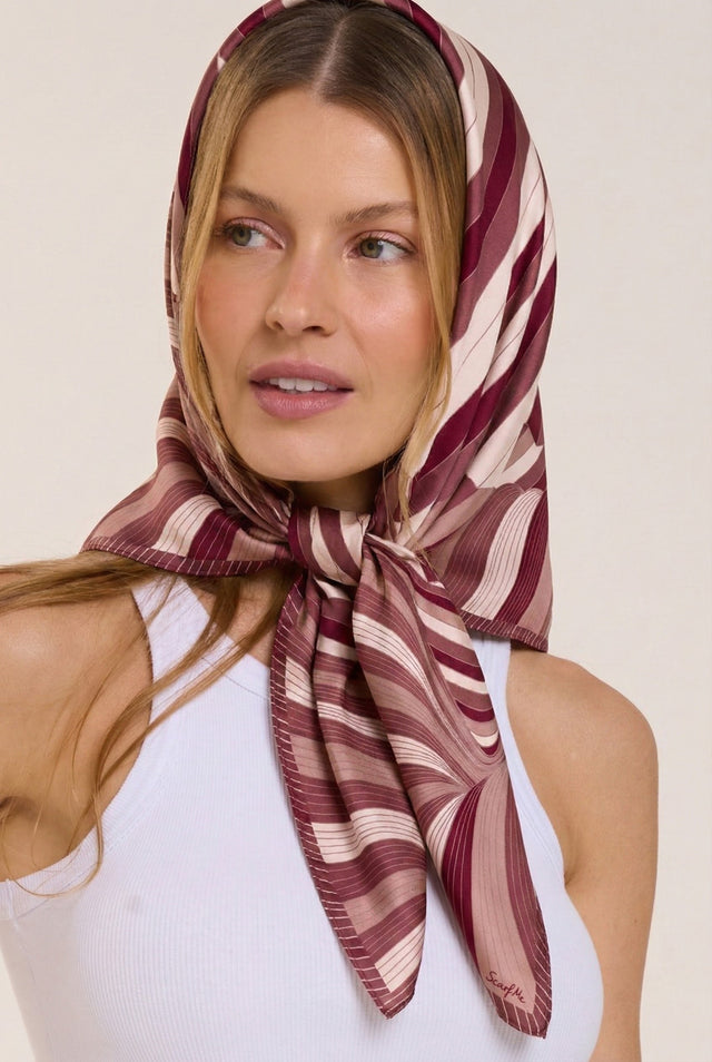 Lenço Tropical Gráfico marsala em cetim de seda | 90x90cm