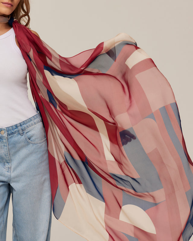 The Silk Mousseline Scarf Me has a fine, soft fabric that provides comfort and a slight transparency that creates an excellent fit.