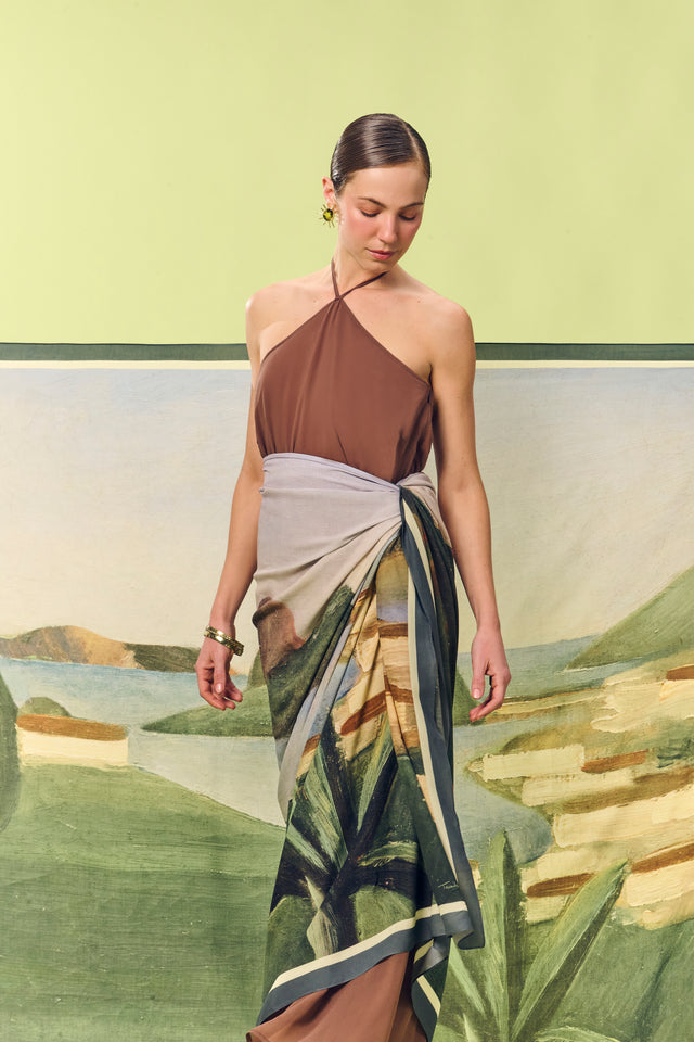 Pareô double face Rio de Janeiro 1923 em cetim de seda | 130x200cm