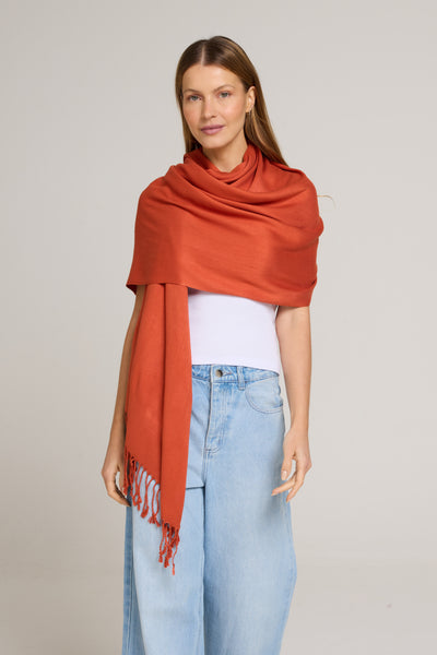 The ocher viscose Pashmina is the best companion for cold days, sliding over your shoulders and never losing its charm and elegance in all occasions of use.