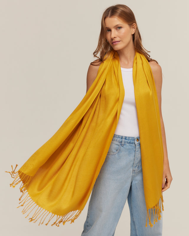The caramel viscose Pashmina is the best companion for cold days, sliding over your shoulders and never losing its charm and elegance in all occasions.