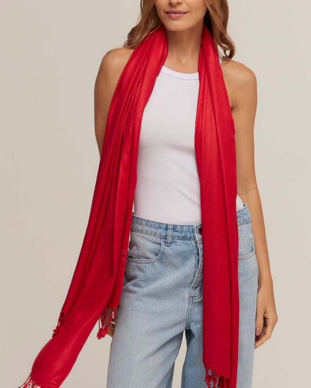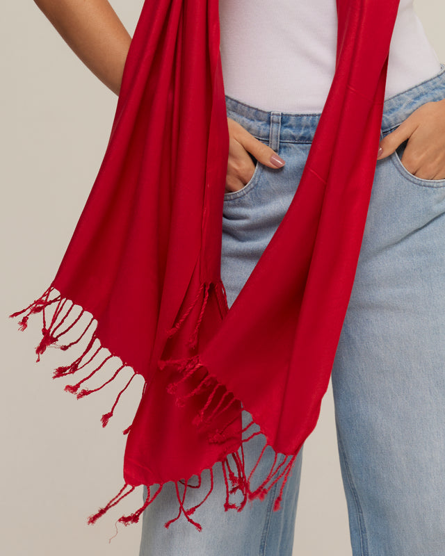 The cherry viscose Pashmina is the best companion for cold days, sliding over your shoulders and never losing its charm and elegance in all occasions of use.