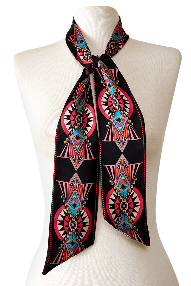 Tribal Geometric Twilly in Polyester Satin | 8x130cm