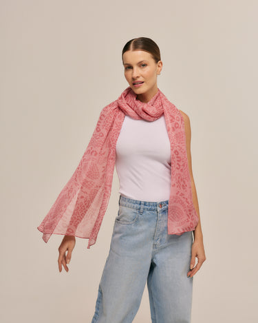 Quick viewMajestic Print Pink Silk Satin Scarf | 90x90cm