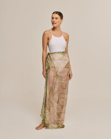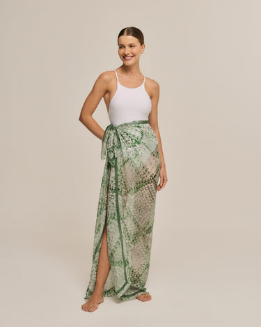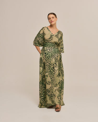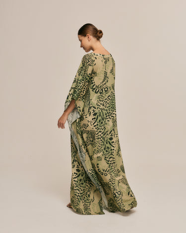 Quick viewLong silk kaftan in green Cerrado ocelot