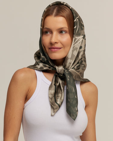 Quick viewMajestic Print Green Silk Satin Scarf | 40x40cm