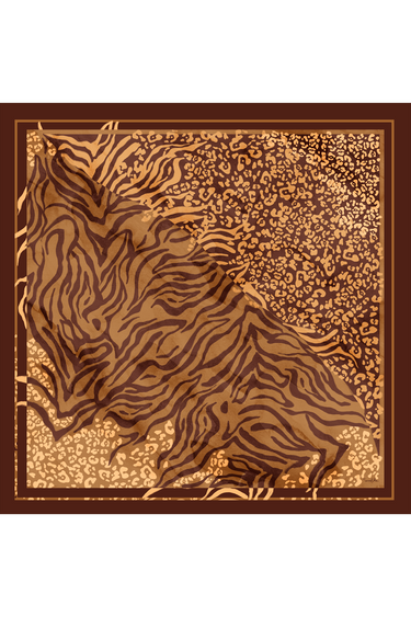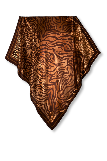 Quick viewBrown Zebra Scarf in Silk Satin | 110x110cm