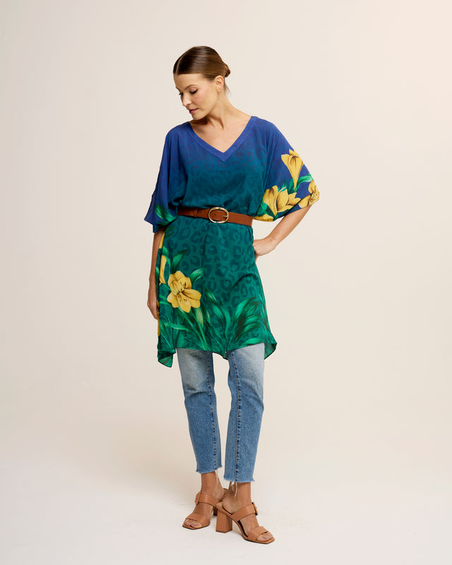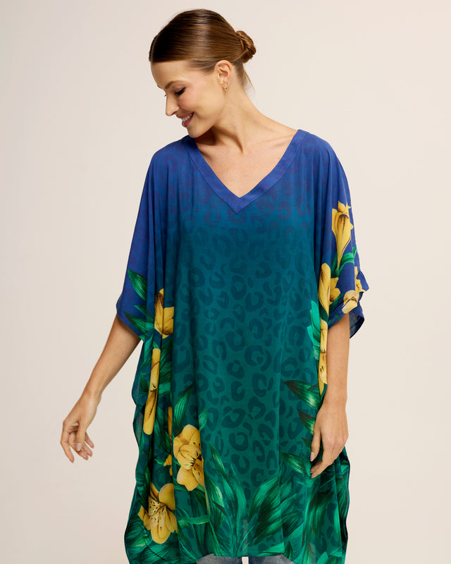 Short viscose kaftan in Brazil Tropical