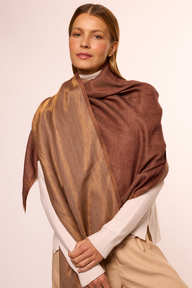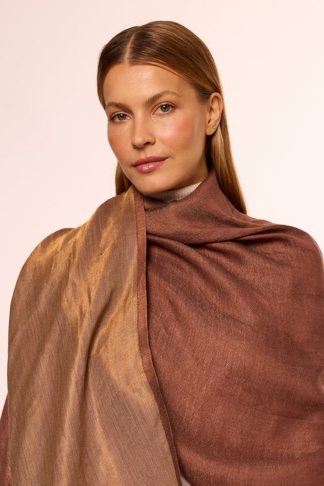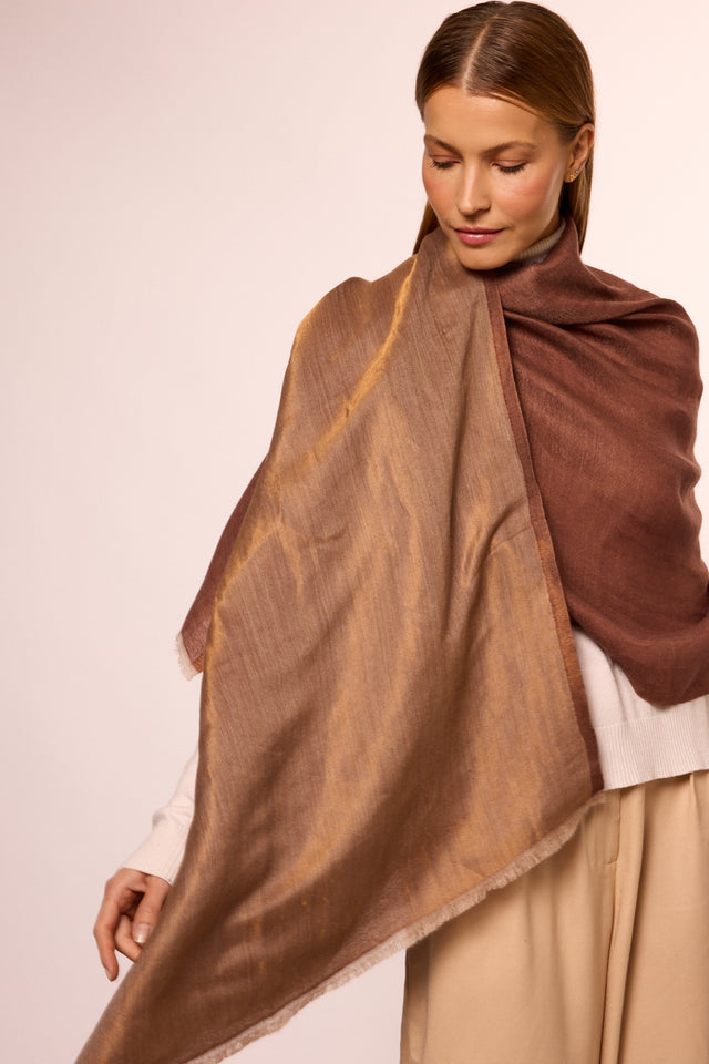 Double Sided Cashmere with Silk Zari Chocolate