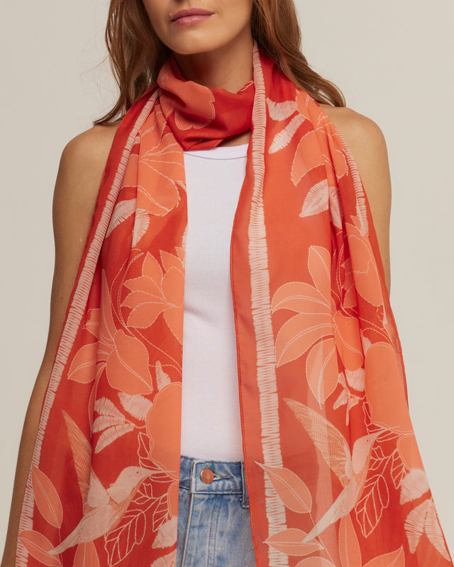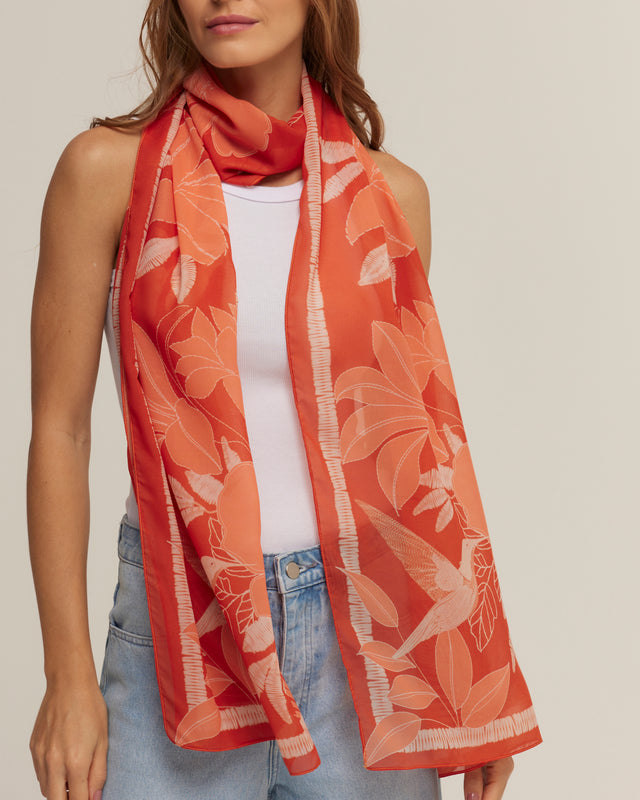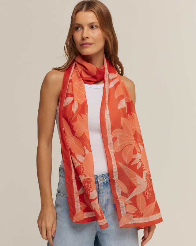 Orange scarf in polyester muslin | 45x210cm