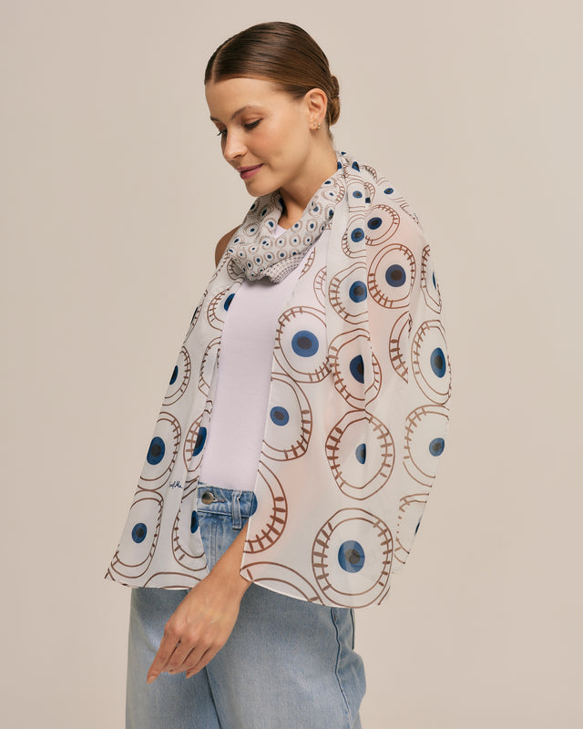 Evil Eye Mandala Scarf in Polyester Muslin | 45x210cm