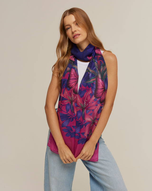 Scarf with light transparency, thin, soft and flexible fabric that provides comfort.
