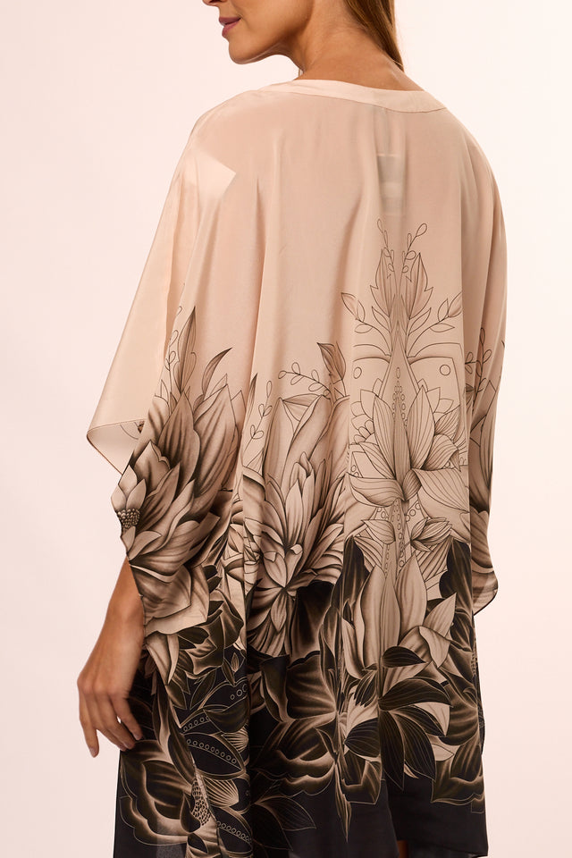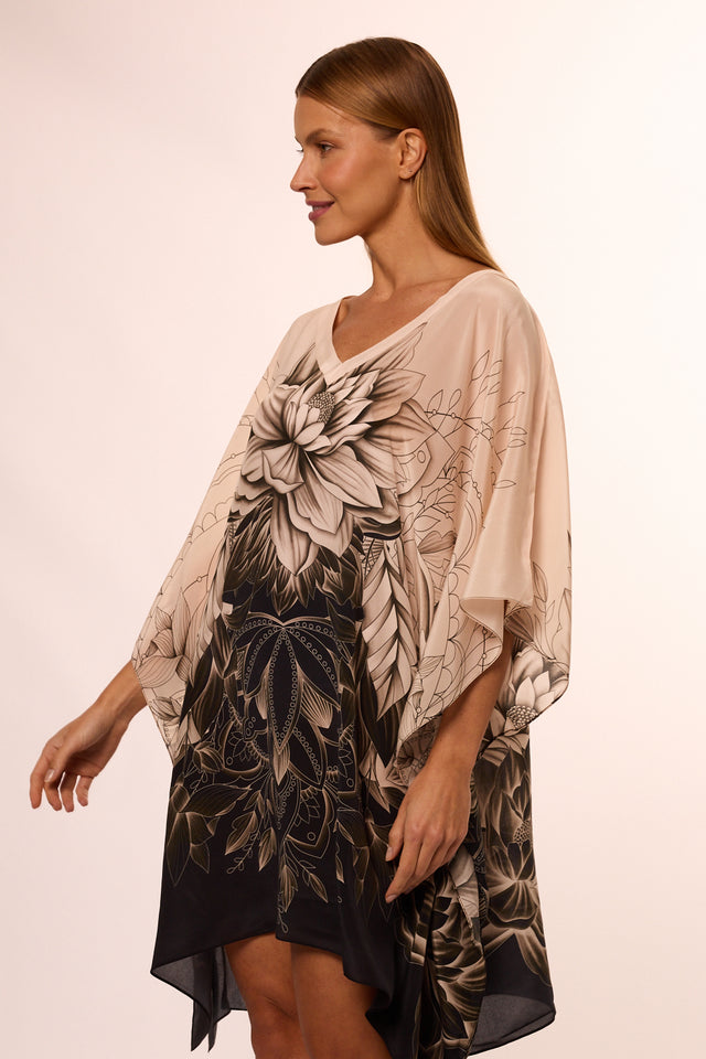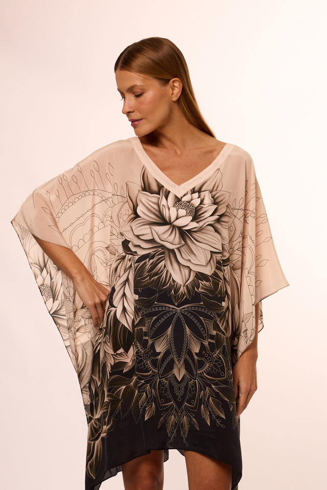 With its perfect design, the Scarf Me Silk Short Kaftan is an essential piece to have in your wardrobe, combining comfort and sophistication. Elegance, glamour, and authenticity define this product.