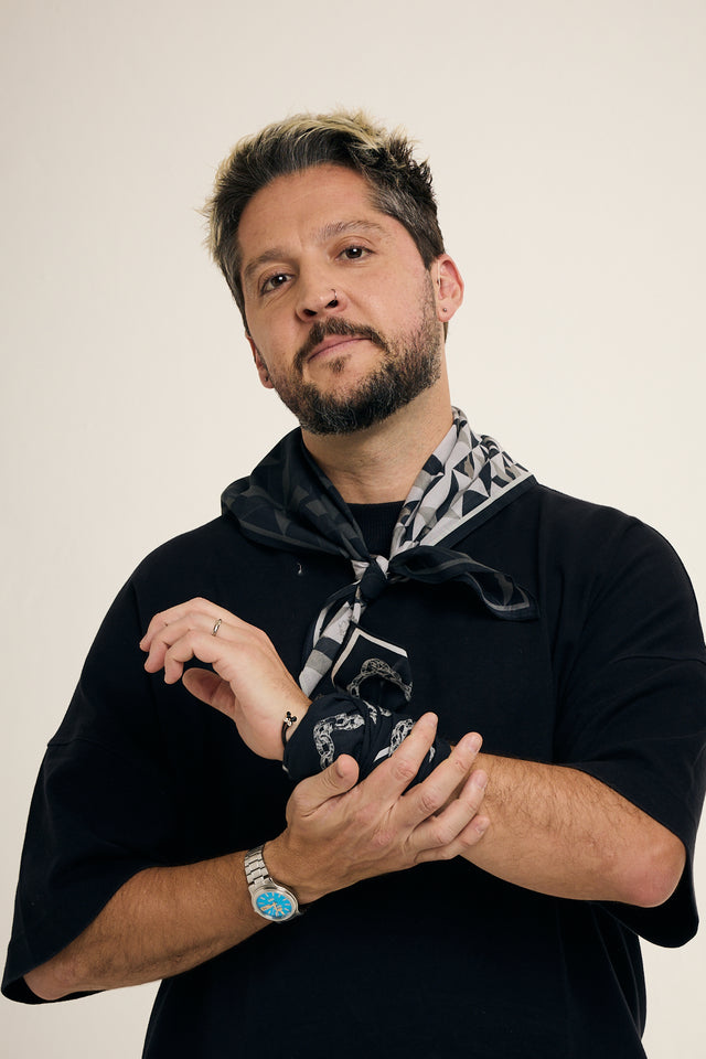Scarf Me's first collaboration with a man has arrived: André Vasco, a natural communicator, a 24/7 creative, and a lover of scarves. The collection was born from this genuine and spontaneous relationship with the accessory, worn daily with style, personality, and freedom.