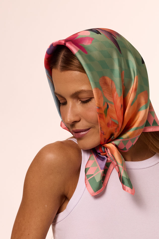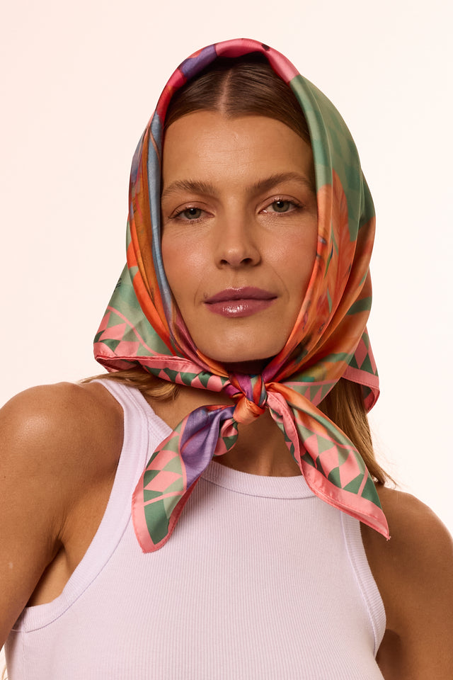 Toymanifesto Guardian of the Portals scarf in polyester satin | 70x70cm