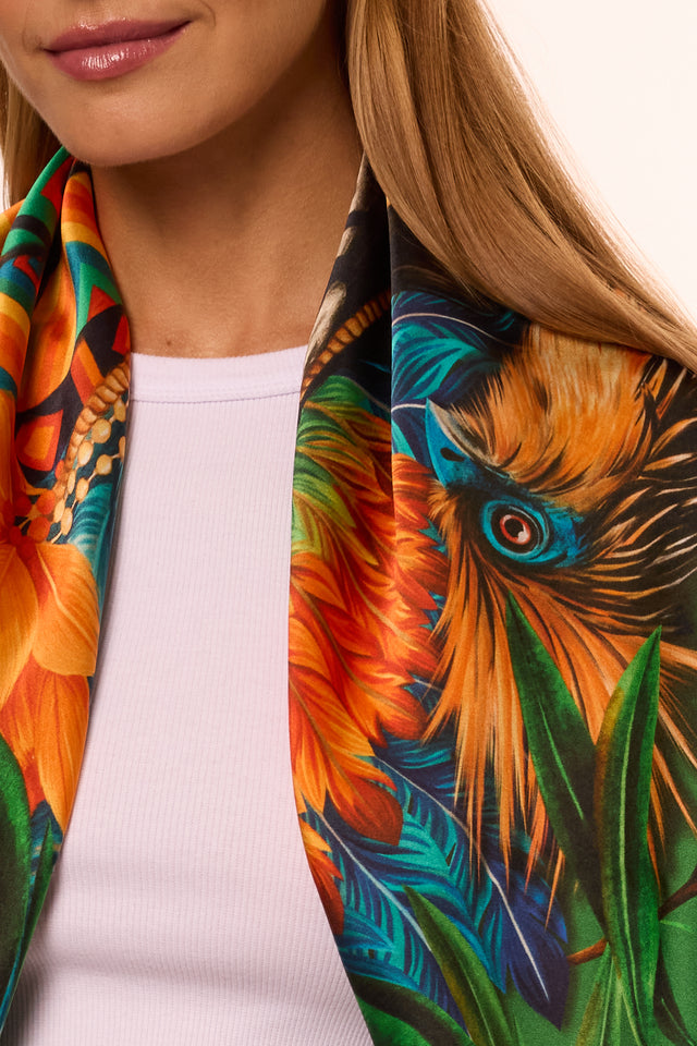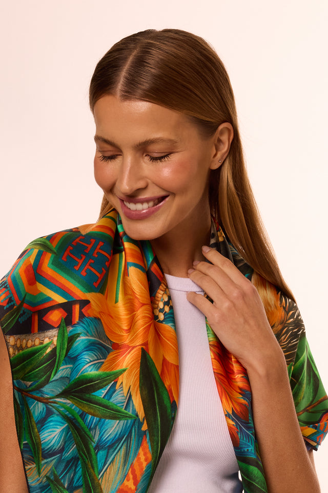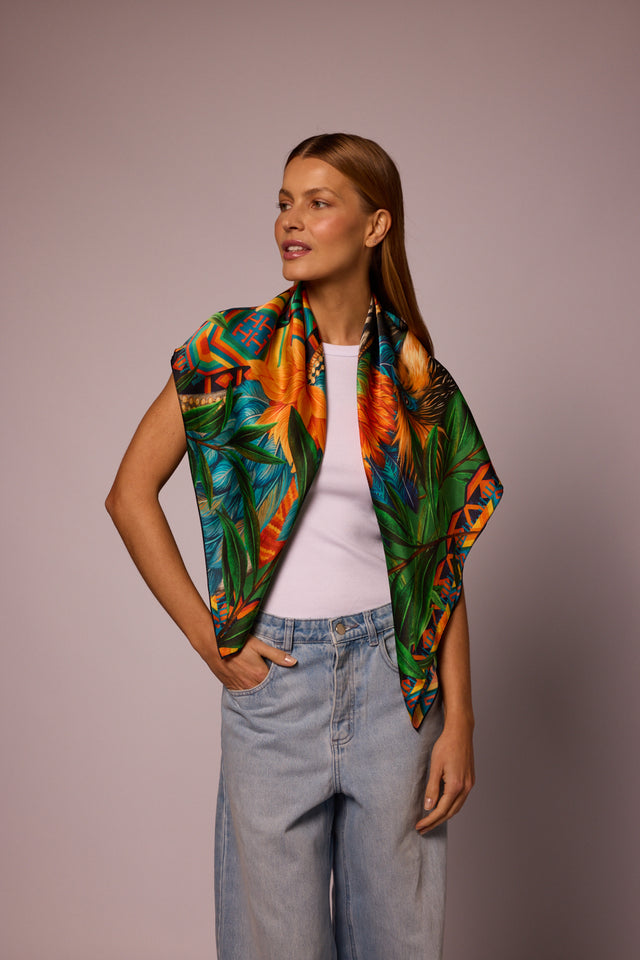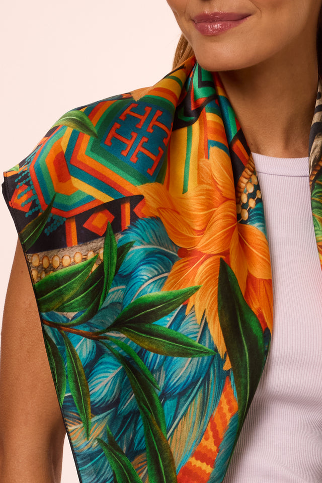 SILK SATIN MARBLE FLOWERS SCARF | 90X90CM