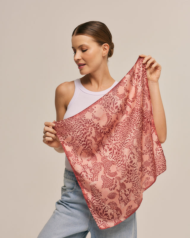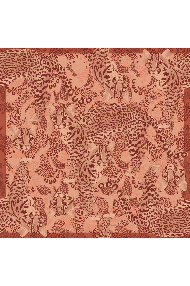 Terracotta Cerrado Ocelot Scarf in Polyester Satin | 50x50cm