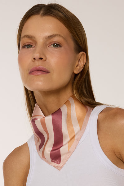 Maximalist Stripes Scarf in pink silk satin | 40x40cm