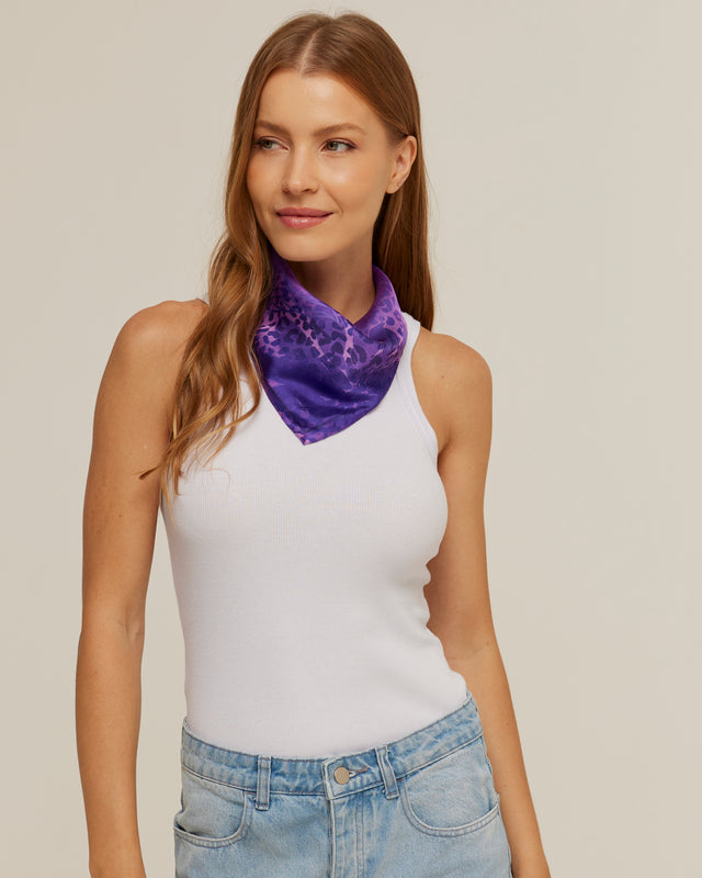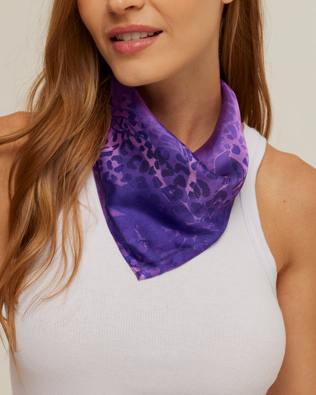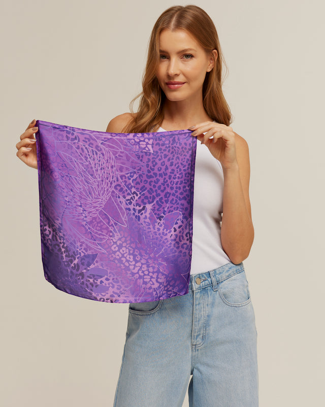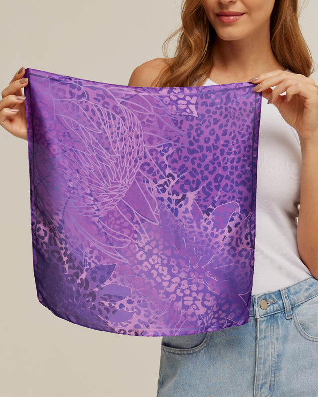 Majestic Print Purple Silk Satin Scarf | 40x40cm