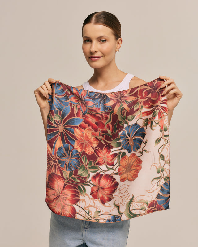 Marble Flowers burgundy scarf in polyester satin | 50x50cm