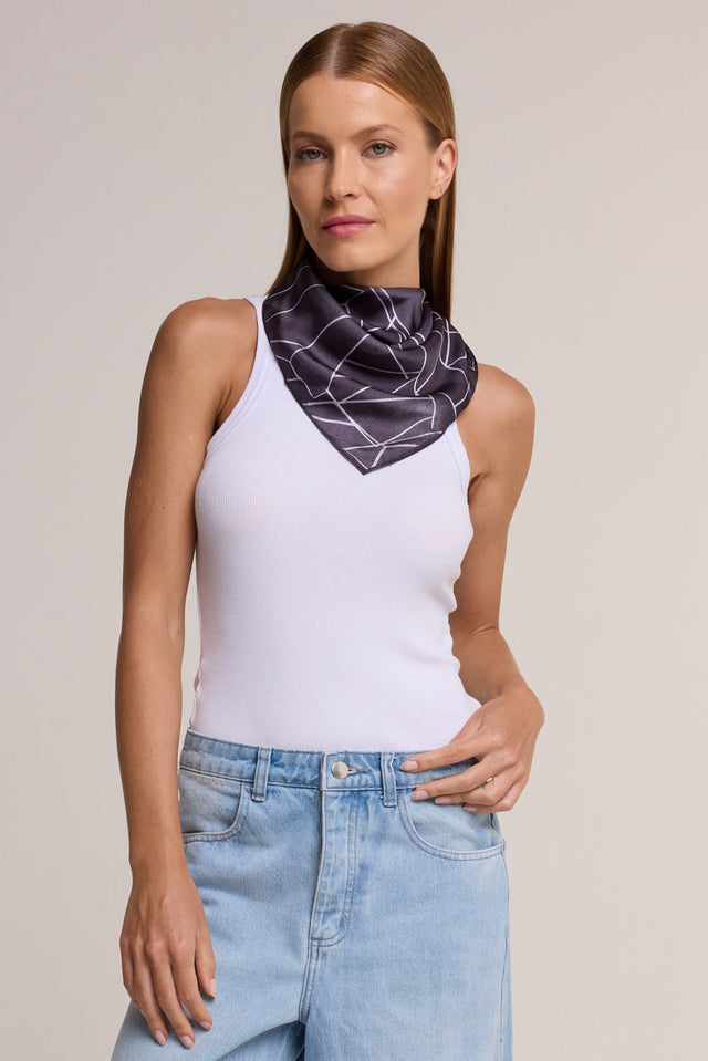 With a signature print that translates the city's angles into graphic shapes, the collaboration features scarves in 50x50 and 90x90 sizes, as well as polyester satin twillies in off-white and black versions. Each piece is an invitation to dress São Paulo with style and identity.