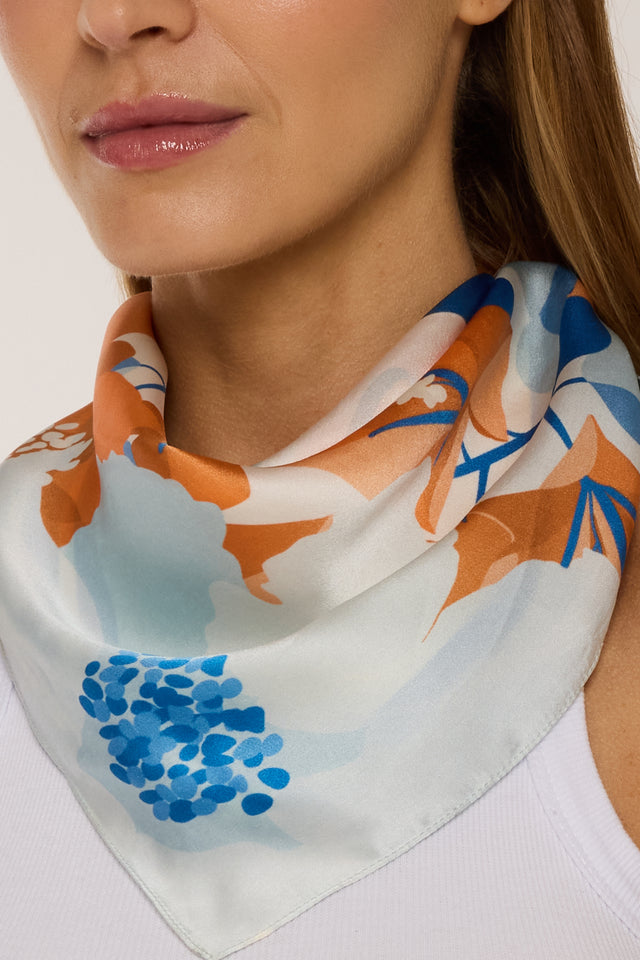Santorini Sunset in Oia scarf in silk satin | 65x65cm