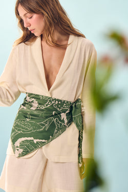 Double-sided scarf with silhouettes in silk satin | 110x110cm