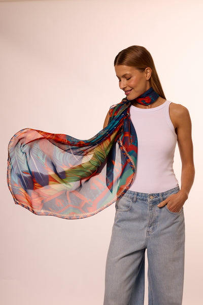 Max Amazon Indigenous scarf in silk muslin | 130x130cm