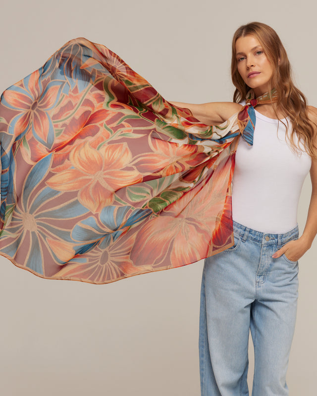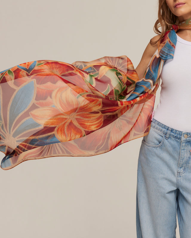 The Silk Mousseline Scarf Me has a fine, soft fabric that provides comfort and a slight transparency that creates an excellent fit.