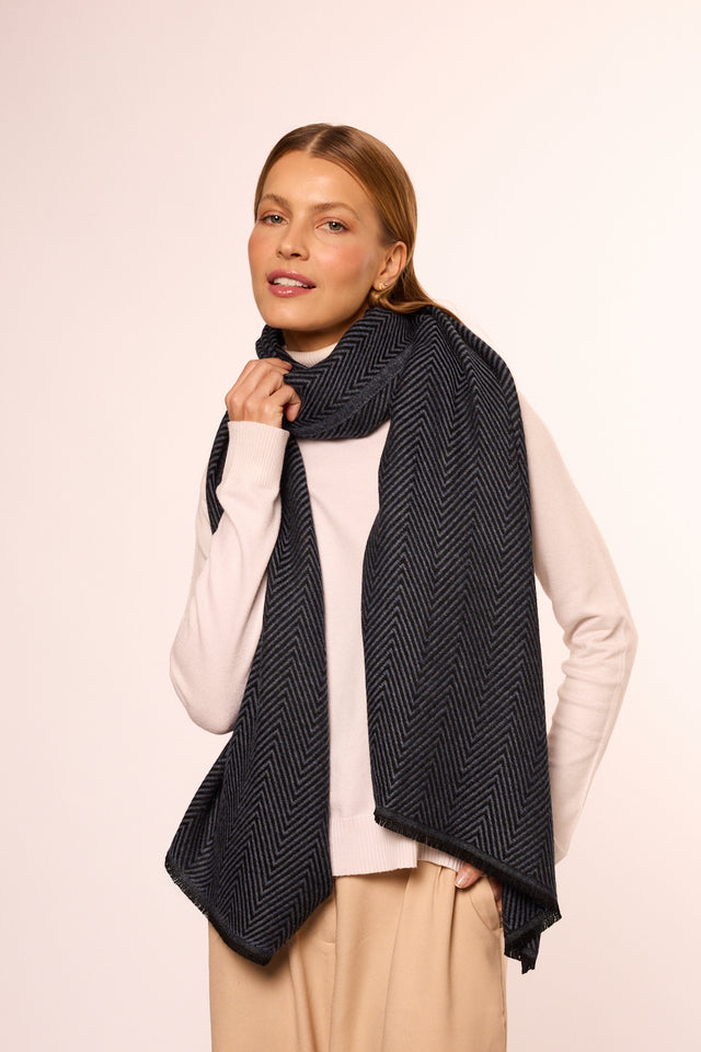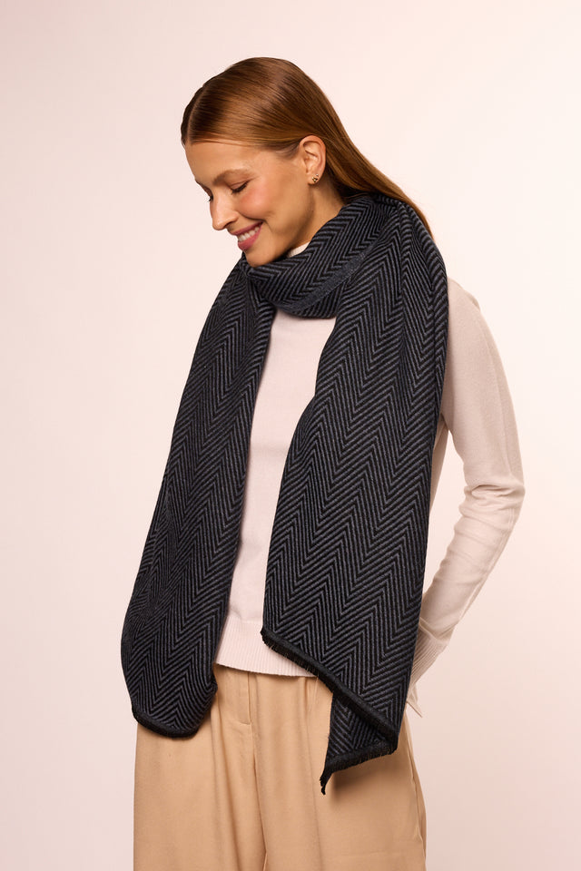 O Cashmere Espinha de Peixe Scarf Me, é uma peça mais encorpada, a origem do nome vem da trama, pois os fios são costurados em forma de espinha de peixe, trazendo a sofisticação e o charme desde a primeira trama.