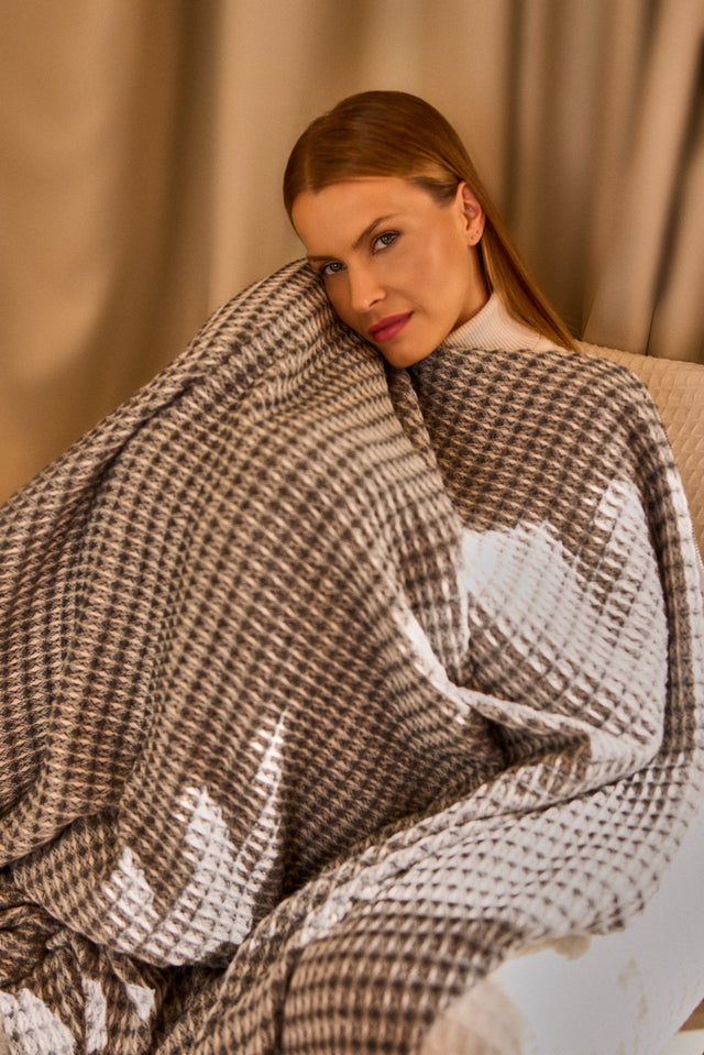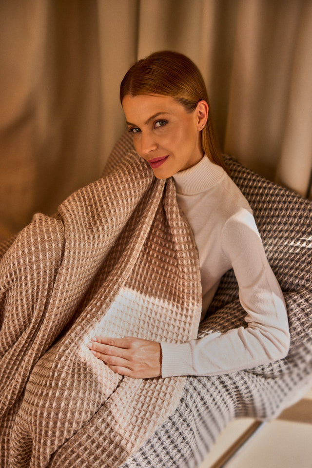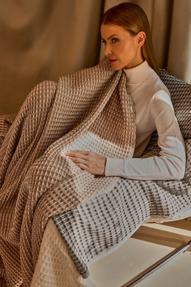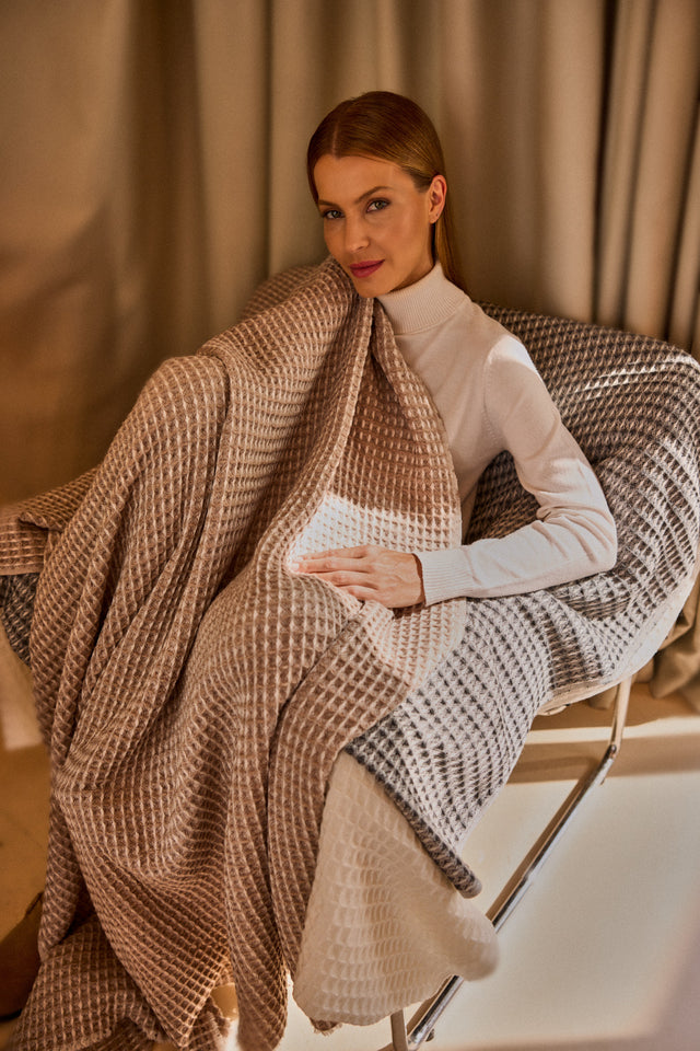 Envolva-se com a máxima expressão do conforto e da elegância. Nossa manta 50% cashmere e 50% lã é confeccionada com fibras naturais raras, provenientes das regiões mais nobres do Nepal e cuidadosamente selecionadas para oferecer um toque incomparável de suavidade, leveza e calor.